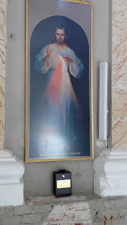 Obraz polské vizionářky Faustyny Kowalské (který tato nechala podle svého snu namalovat). Polsky nápis bývá “Jezu, ufam Tobie”, česky “Ježíši, důvěřuji Ti.” Litevsky: “Jezaus, pasitikiu tavimi”.