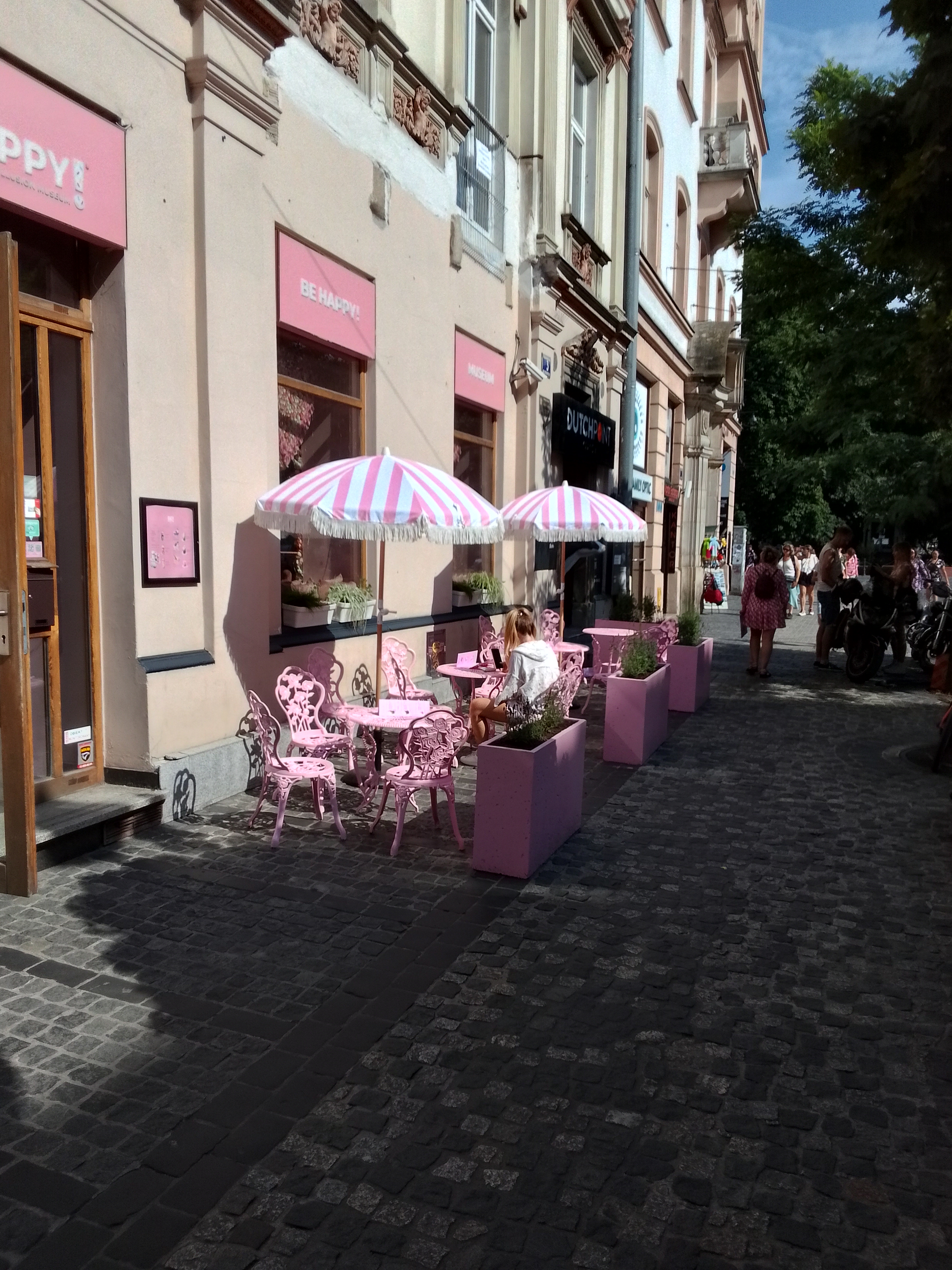 Babette ist der Farbtopf mit Rosa von der Leiter gefallen. – Babettě spadl z žebříku nádoba s růžovou barvou.
