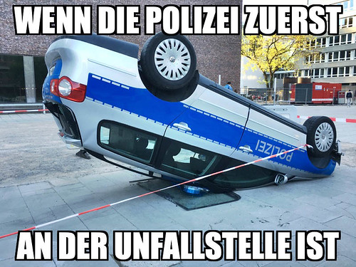 Wenn die Polizei zuerst an der Unfallstelle ist. – Když je policie na místě nehody jako první.