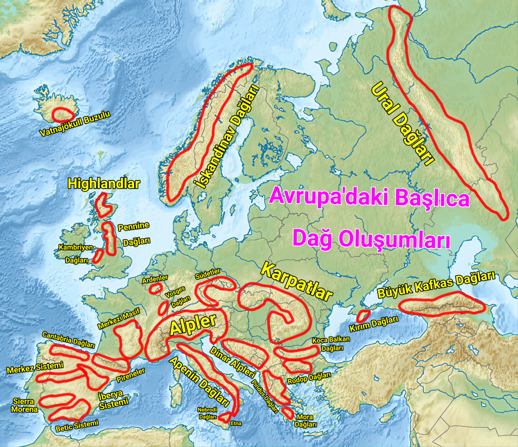 Avrupa’daki Başlıca Dağlar  hlavní hory v Evropě