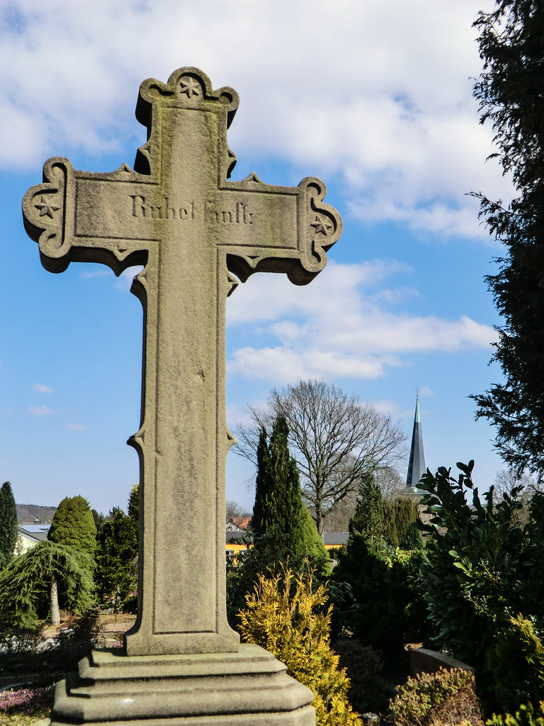 Ruhe Sanft – odpočívej sladce – kříž na hřbitově ve Frömern