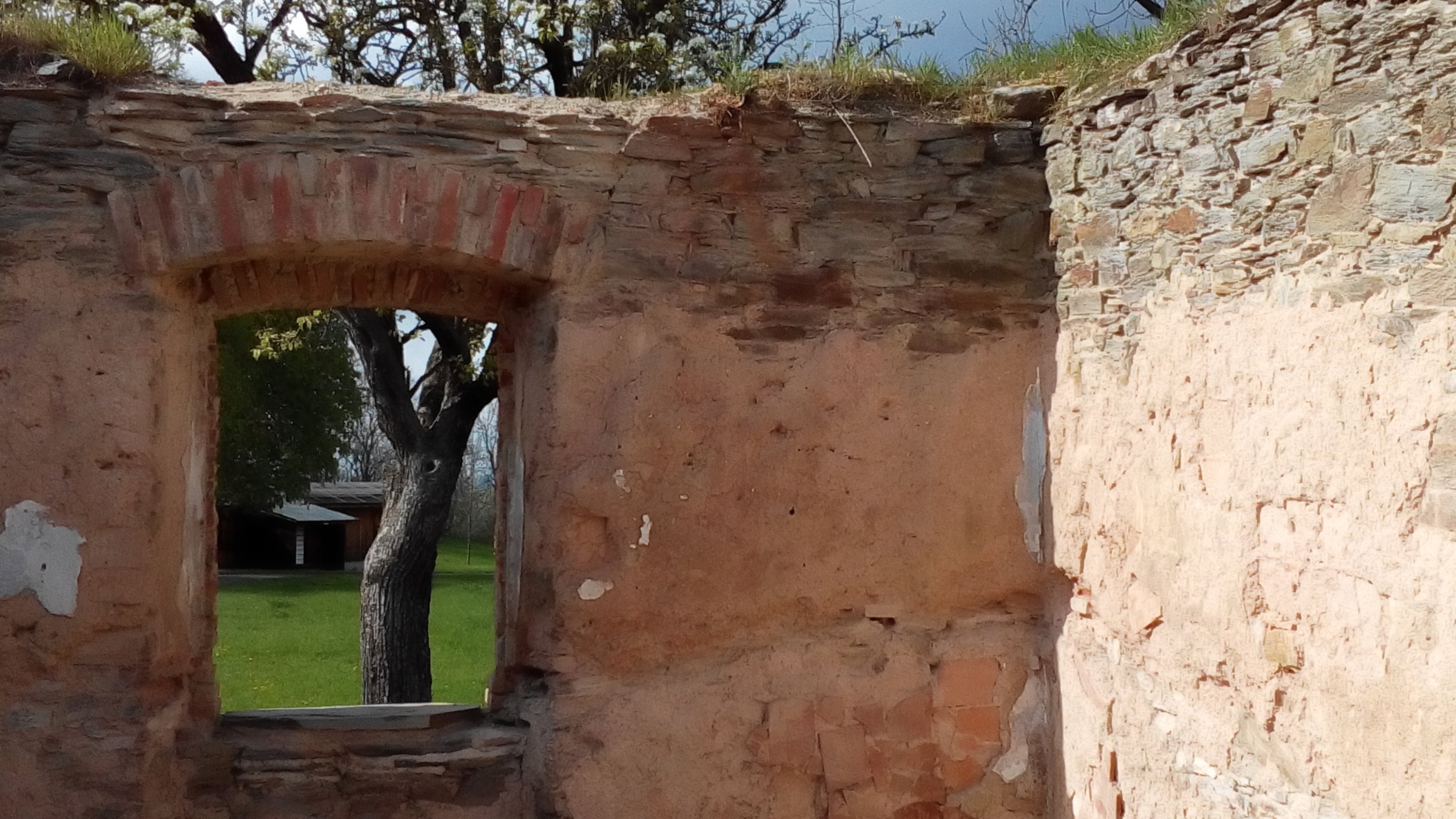 = Überreste oder Überbleibsel von Gebäuden, die in der Vergangenheit existiert haben, aber jetzt in einem zerstörten oder verfallenen Zustand sind  zbytky budov, které existovaly v minulosti, ale nyní jsou ve zničeném nebo zchátralém stavu.