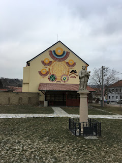 U kostela je cedule s nápisem Saleziánské hnutí mládeže, ale saleziáni už tam podle všeho nepůsobí.