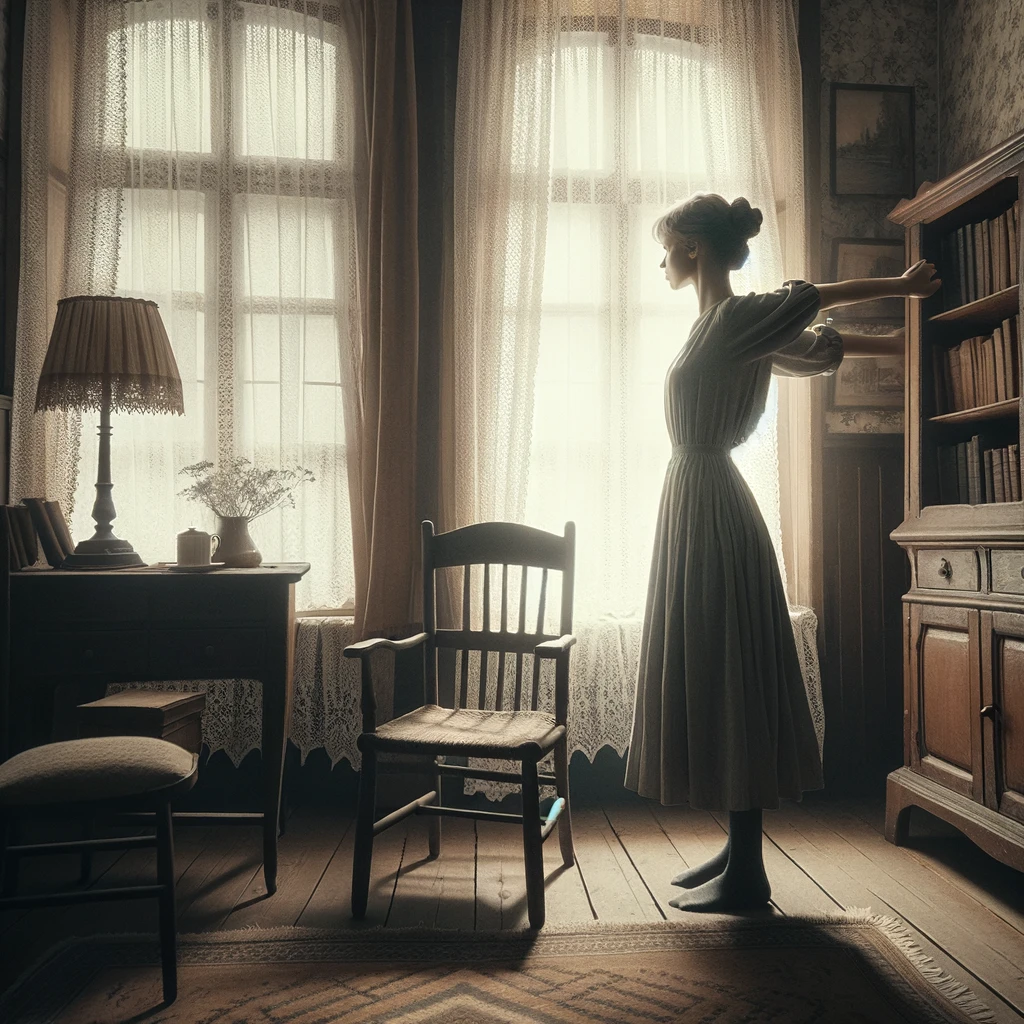 Sie stand auf und reckte sich. – Vstala a protáhla se.