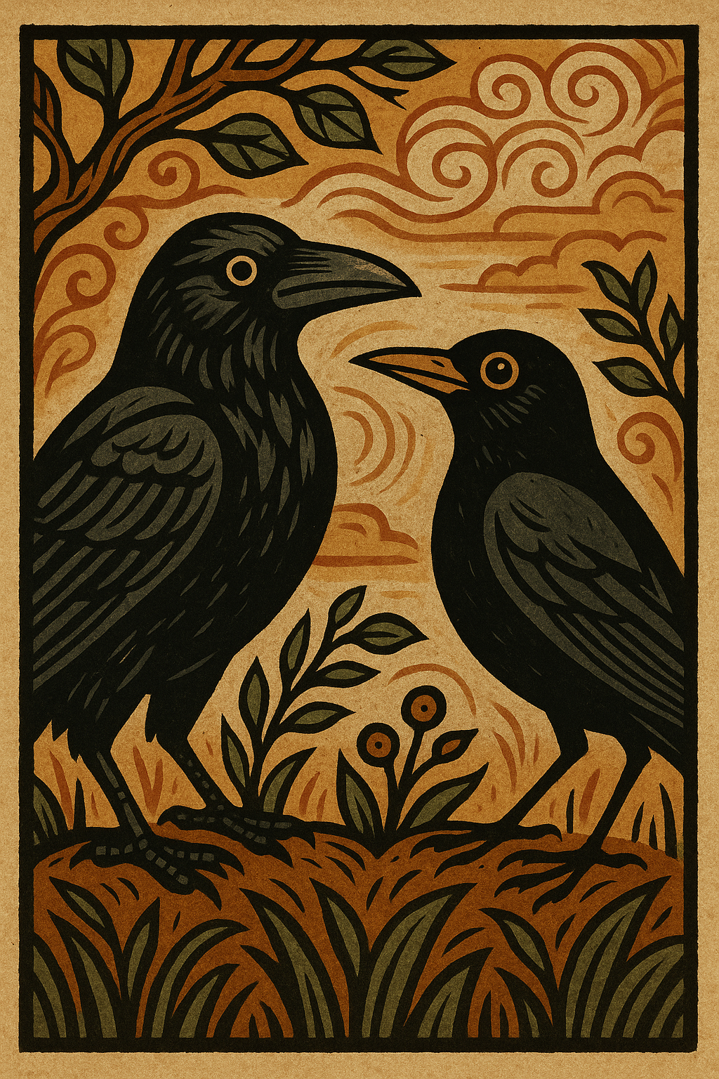 Vrána má černou barvu. Kos je černý a má žlutý zobák.