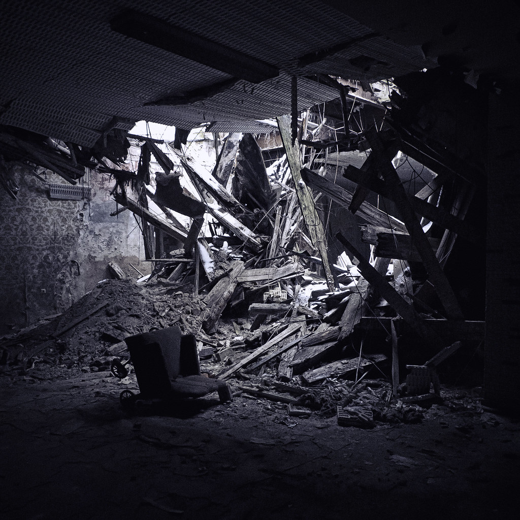 - Přechodný význam: Zhroutit se, zřítit se, sesunout se. Označuje náhlý a dramatický kolaps stavby, budovy nebo struktury.Příklad: